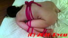 次に腕と脚を一緒に綿紐で縛って脚を閉じられないよう固定し彼女の秘部を晒しました。 |
