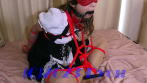 彼女はメイド服姿をかなり気に入っていて、そのまま綿紐で上半身を緊縛していきました。 |
