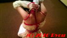 次に綿紐で菱縄に緊縛し、両手を頭の上で動かないように固定して強く拘束しました。 |