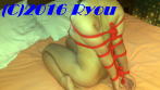 彼女を全裸にすると、背後で腕を伸ばした状態にして綿紐で両腕を緊縛していきました。 |
