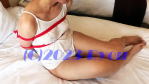 彼女をベッドに横向きに寝かせると、初めての緊縛ながらも安心している様子でした。 |